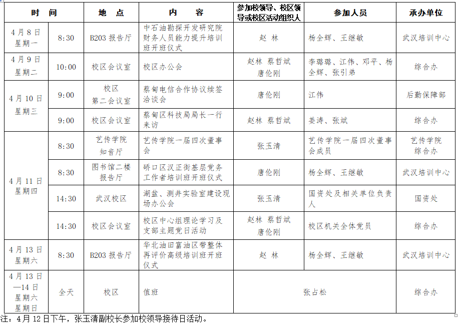2018-2019学年第二学期第8周校区主要工作及活动安排表