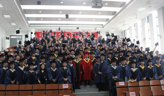 仪式结束后,校领导及院系导师走下讲台,融入毕业生中合影留念。(编辑 王继敏)