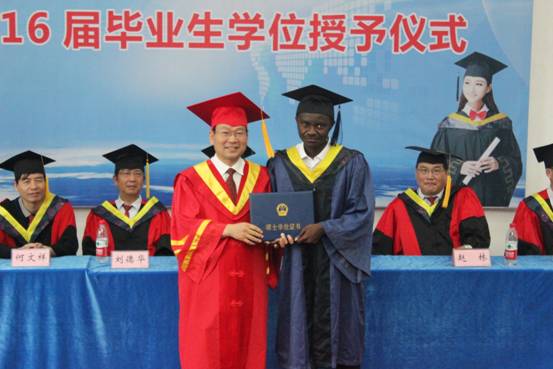 仪式上,176名硕士毕业生代表依次走上讲台,副校长周思柱与他们一一握手,将具有象征性的流苏从学士帽的右边移至左边,为其颁发硕士学位证书并合影。这标志着2016届硕士研究生学有所成,正式获得硕士学位。