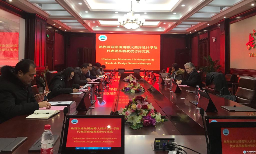 赵林代表学校对Guellerin校长的来访表示欢迎,希望借助中法生态城的东风,大力促进两校在可持续发展设计、绿色环保等方面的交流和合作,再续高山流水遇知音的佳话。Guellerin校长详细介绍了南特大西洋设计学院的专业设置及合作项目。会谈期间双方代表就本科2+2、3+1项目、硕士项目及短期学习项目等进行了细致、务实的沟通。