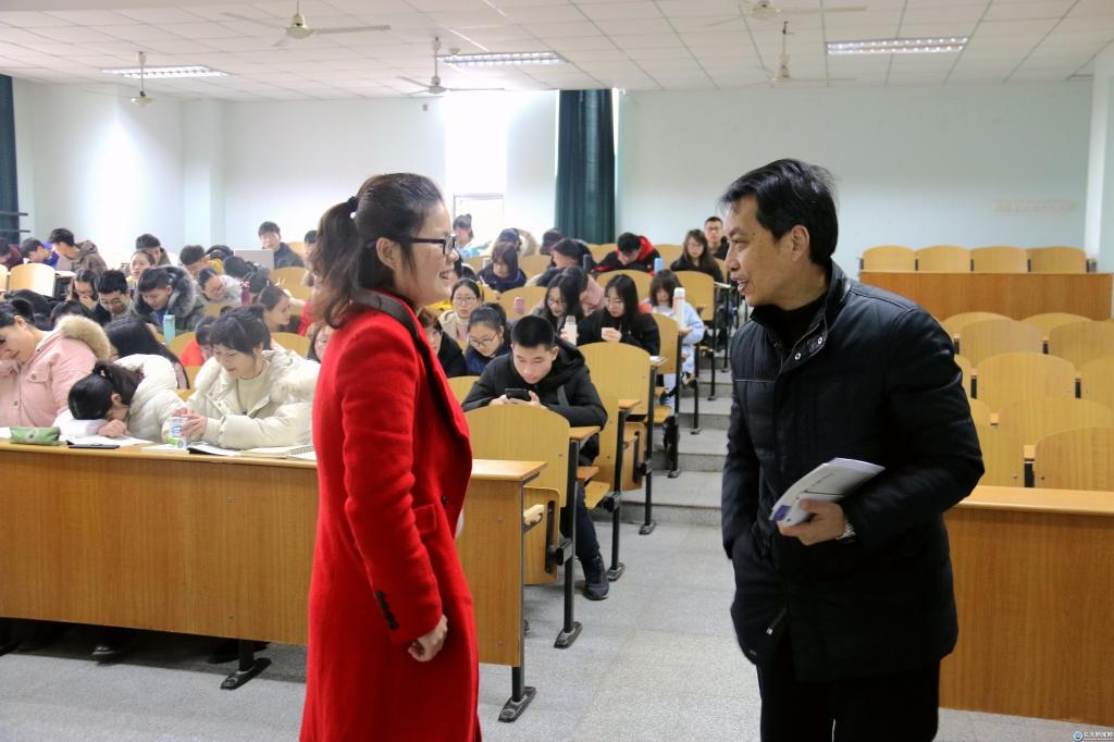 7:50,校长冯征已在西校区7-107教室就座,静静等候彭敏老师的《大学英语》开课。课堂上,冯征听得十分认真,课后还与师生交谈,详细了解教学情况。随后,冯征还深入其他课堂听课并与师生进行交流。