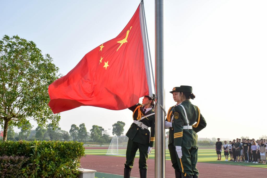 (见习记者 孙诗艺/文 刘思艺 孙诗艺/摄)新学期,新起点,新目标,新希望。9月3日上午,武汉校区国旗护卫队在操场举行了新学期首次升旗仪式。武汉校区艺术与传媒学院党委书记邹火明、副院长梅国海、辅导员饶艳琴等及艺传学院全体同学参加了此次升旗仪式。