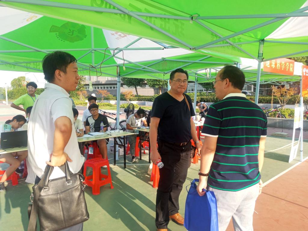 迎新现场,记者抓拍到校区常务副校长赵林、副校长蔡哲斌、唐伦刚一行三人走访五个学院的迎新点,认真询问迎新工作的具体情况。