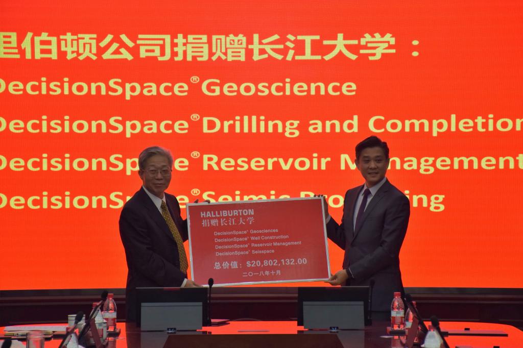 (通讯员 薛梅/文 学生记者 刘昊/摄)10月18日下午,“DecisionSpace®勘探开发一体化软件”捐赠仪式于石油科技大楼知音厅举行。