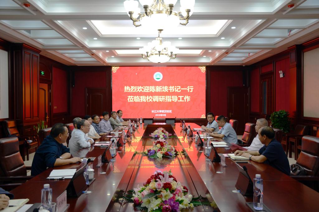 (学生记者 卫泂钒/文 见习记者 郭珺/摄)9月26日下午,蔡甸区委书记陈新垓、蔡甸区委常委姚晓华一行四人莅临我校调研工作,与我校领导展开深度交流。