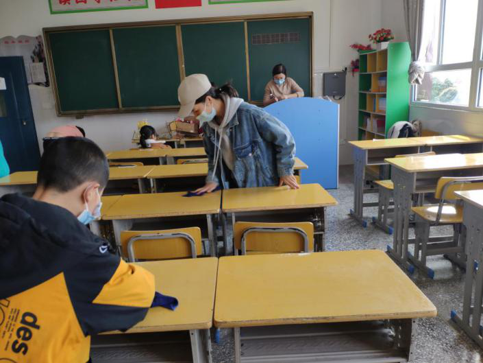 受到疫情影响,学校开始实行网上教学工作,而曾经4月份本该拥有欢声笑语的校园,如今却铺上了一层层的灰尘。伴随着4月8日武汉解封的消息,很多地区也都开始了学生有序的复学复课准备工作。她家乡当地的小学也有部分教职工开始返校,为孩子们复学做准备。而复学的第一步就是拂去尘土,在得知学校需要一批志愿者去打扫卫生,刘明鑫和妈妈第一个去报名参加,只想要为祖国的花朵创作一个好的学习环境,希望疫情早点过去,学生们依旧能在校园里接受最好的教育,重现往日充满欢声笑语的课堂,体验最美好的童年时光和同学情谊。(艺传学院供稿)