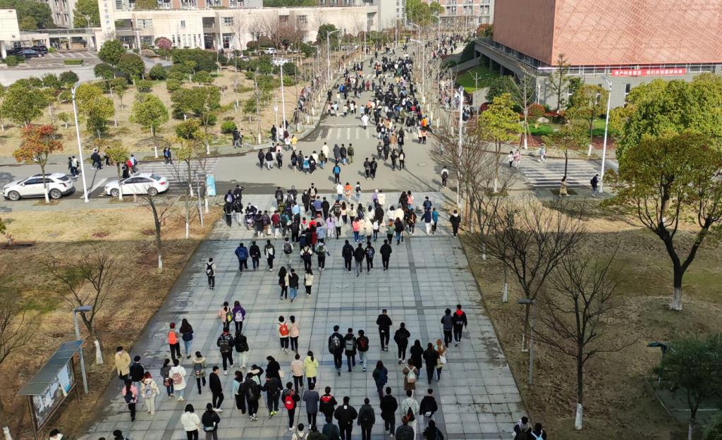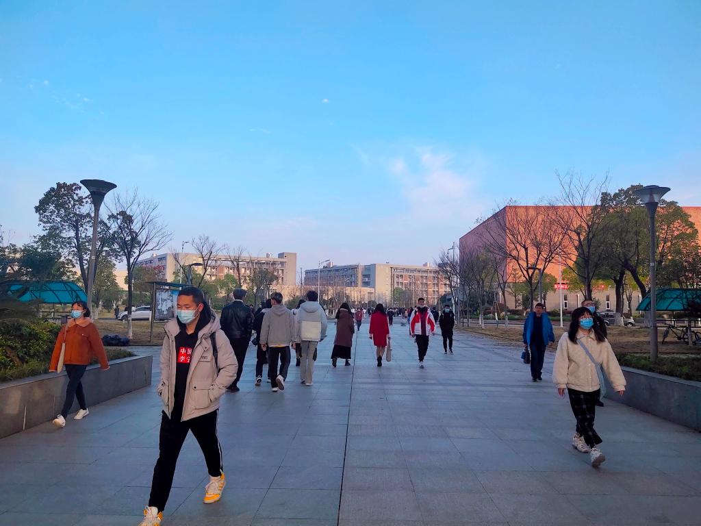 清晨的润泽大道,学子们匆匆走过,奔赴知识的殿堂。