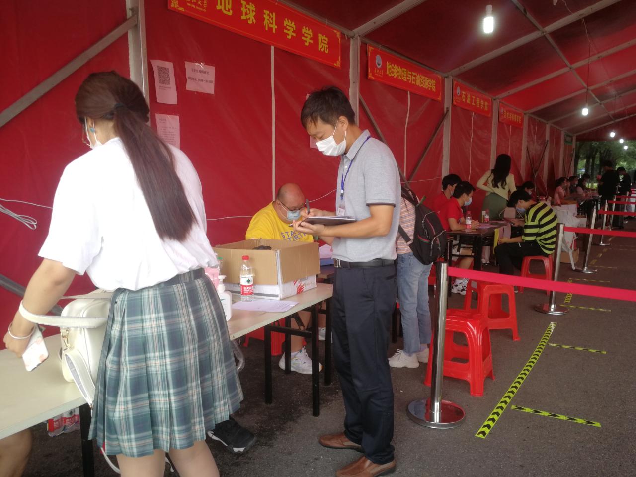学生事务部的老师王宁,更是舍小家为“大家”。身负重任的他,在校区2020届毕业生返校工作启动之前,就把3岁半的孩子送回了河南老家,一心扑在了这个毕业季紧锣密鼓的准备工作中。谁不想把孩子家人照顾好,可学校在召唤,关键时刻党员挺身而出,只能牺牲家人,把真心留给了学校,把温暖带给了毕业生!6月14日,校区开展毕业生返校工作演练,一场暴风雨让原计划的毕业生返校接待帐篷变得“不堪一击”,校区决定连夜重新搭建返校接待场地。王宁在连轴工作的情况下,当晚又投入到紧张繁重的毕业生返校接待场地搭建布置工作中。彻夜未眠的他,在现场与施工方不断沟通调整细节,场地终于在15日清晨5点多完成搭建和布置。早上7点多,他又紧接着投入到了毕业生返校第一天忙碌的工作中!一整天下来,他已经累得脸色憔悴,但晚上依然坚持在办公室电脑前汇总复核校区毕业生返校数据。顾全大局,甘于奉献,他用实际行动彰显长大人应有的责任与担当!