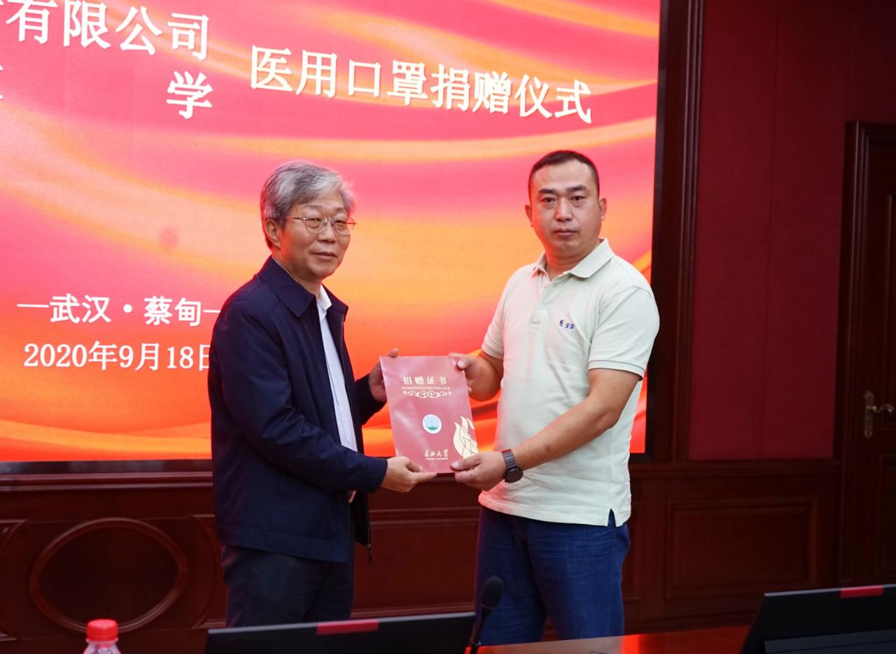 (通讯员 万文婷/文 鲍强/摄)9月18日,上海金塔医用器材有限公司湖北办事处总经理朱明杰一行三人来到武汉校区,向校区捐赠医用外科口罩10万只。