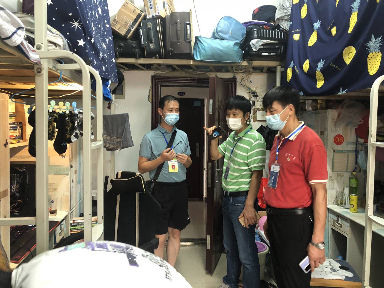 本次检查重点围绕学生宿舍卫生状况、消防安全、违章电器等情况开展。在宿舍检查的同时,老师们也进行了疫情防控宣传,帮助学生强化疫情防控意识,叮嘱学生坚持体温检测和每日健康打卡,科学合理使用空调,到食堂就餐时自带餐具,尽量错峰进餐等。