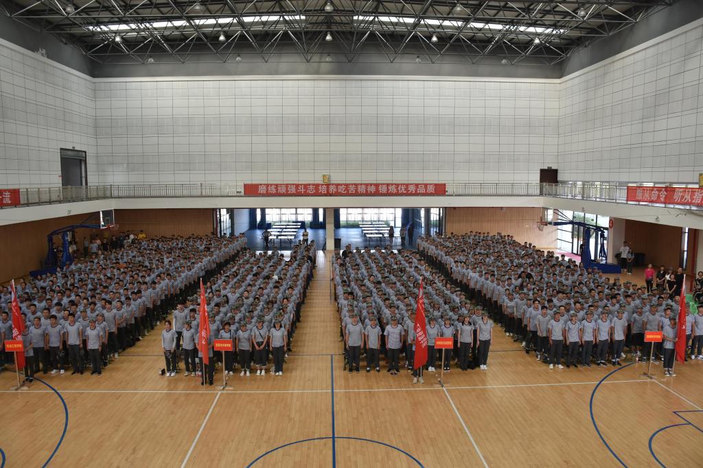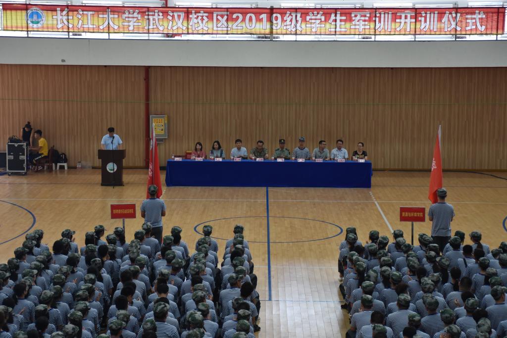 (学生记者 张佳睿 段少育/文 段少育 薛梅/摄)9月5日下午,武汉校区2019级新生军训开训仪式在体育馆正式举行。海军学员队队长张俊、荆州军分区参谋罗秋诚、武汉校区管委会常务副主任赵林、党工委副书记董超、管委会副主任颜建洲、各学院学生工作负责人、新生辅导员、全体教官及2019级新生共同参加了本次开训仪式。开训仪式由党委学生工作部副部长张科主持。