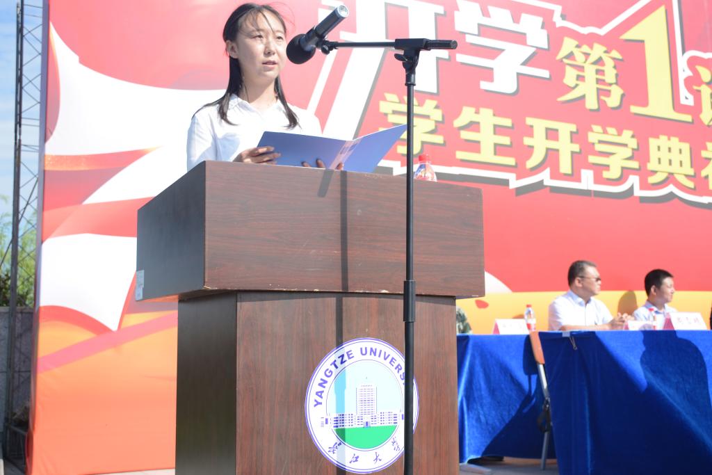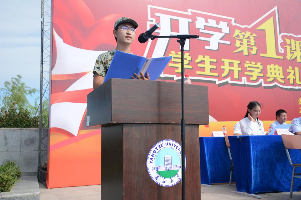 “广纳百川、润泽万物、推陈出新、百折不回。”冯征为大家阐述了“长江精神”所代表的内涵与意义,并借由这短短十六个字向全体新生寄予了殷切期望。冯征表示,希望新生们都可以胸怀宽广、心怀仁爱、创新超越、坚忍不拔,在大学生活中能“乘万里长江之势,养天地浩然之气。”最后,他激励同学们要砥砺奋斗,披荆斩棘,乐观面对各种困难,保持一颗阳光向上的心,更要做到“以青春之我点亮青春之长大,以青春之长大点亮青春之中国!”