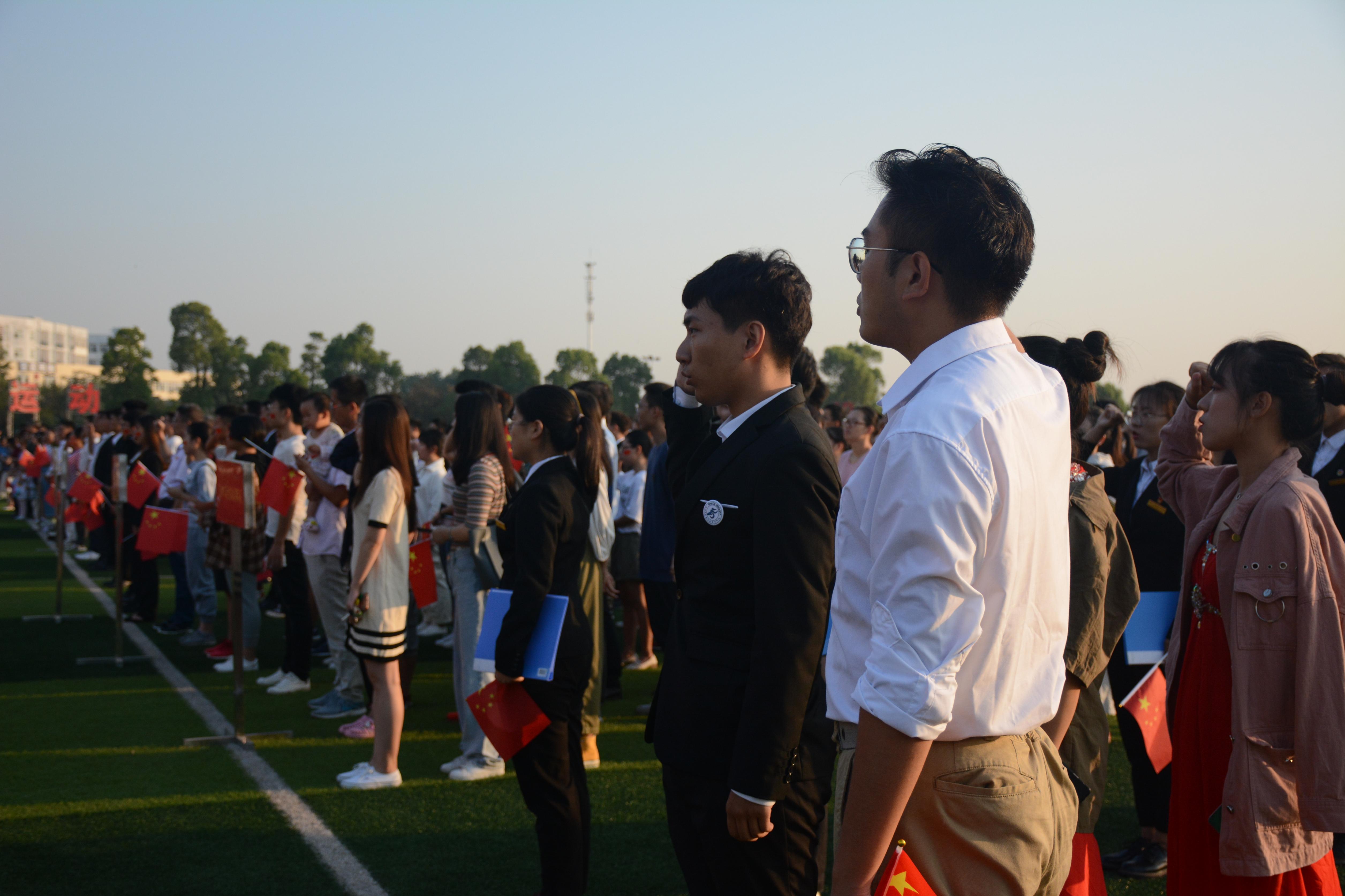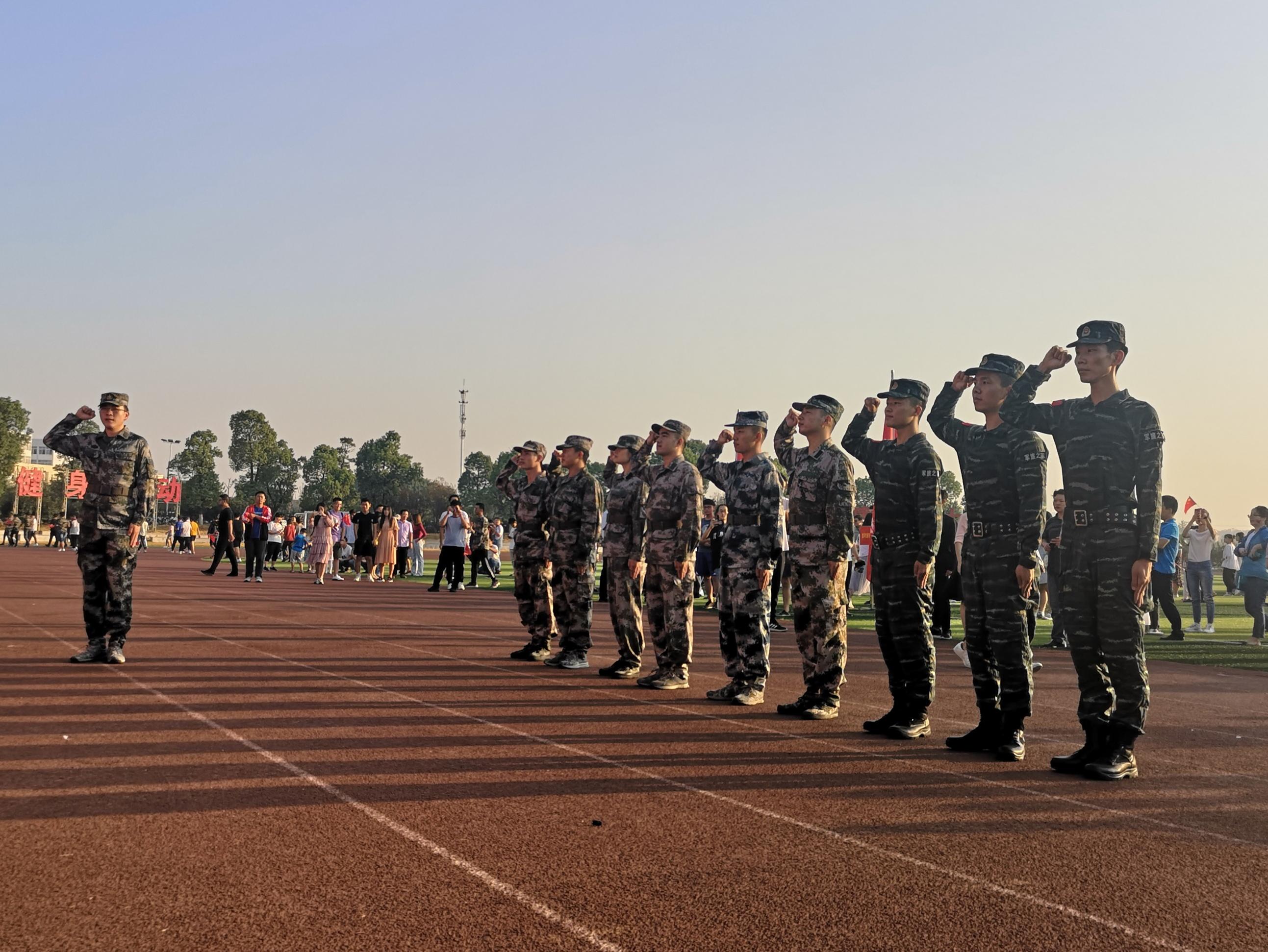退伍返校继续完成学业的“长大老兵”与诸多师生们一同在五星红旗的见证下,举起右拳,呐喊出象征着我们初心的誓词。