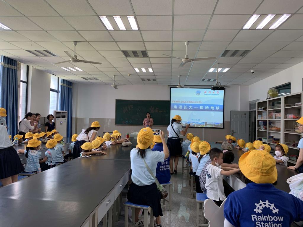 (通讯员 林伟)缤纷六月,草木飘香。25日上午,武汉校区迎来了一群头戴小黄帽的“小可爱”,他们是来自武汉市彩虹堡幼儿园的小朋友。踏着欢快的步伐,热情洋溢的小朋友们手拉手结伴走进了地科实验室。