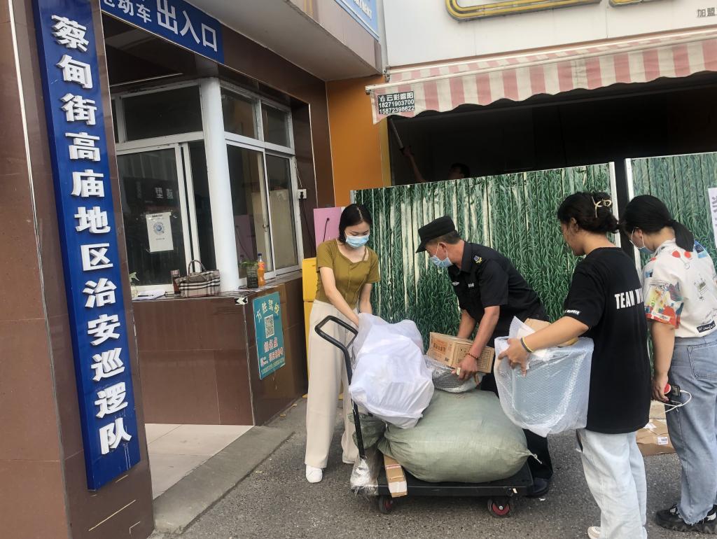 保安谭永传帮助学生搬运行李(见习记者 汪思艺、江永豪/摄)
