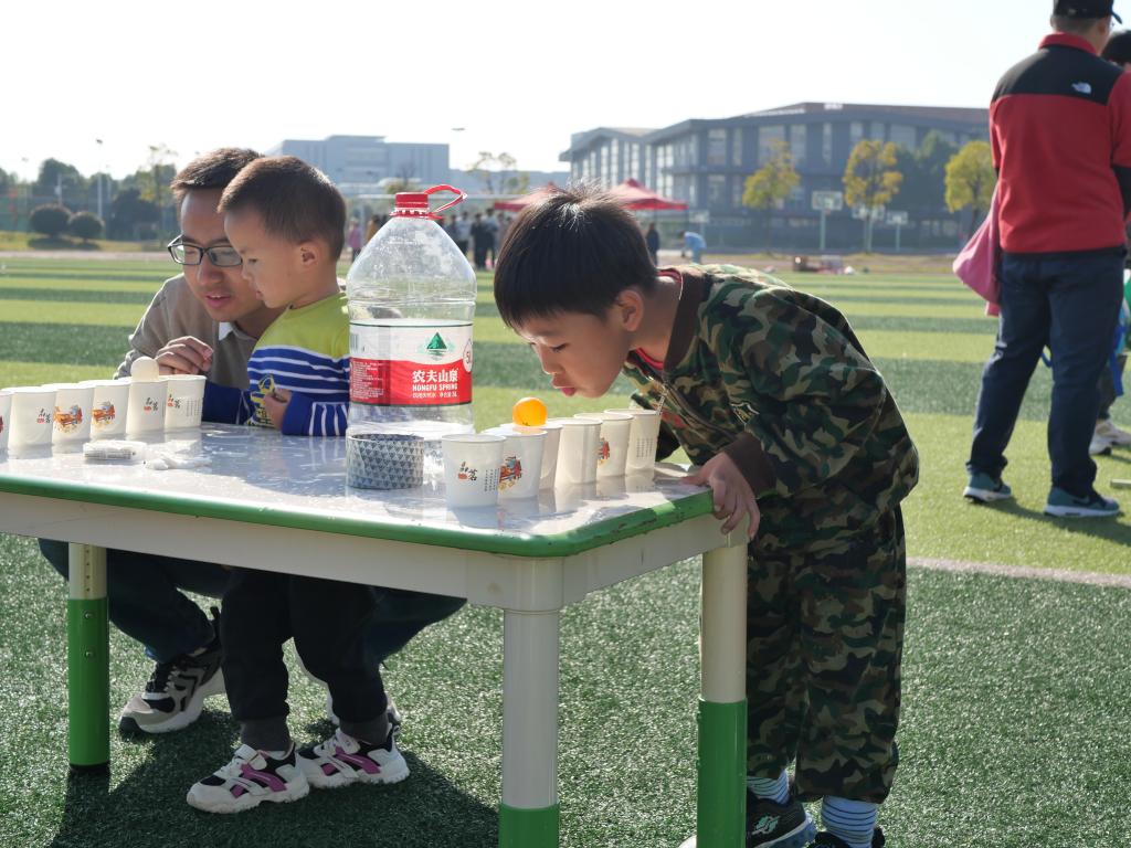 此次亲子运动会由“蒙眼睛找孩子”“赛跑跨栏接力”“保龄球大比拼”等11个子项目组成,吸引了校区62个家庭参加。项目设计兼顾大龄儿童与低龄幼儿,锻炼了孩子们的团结协作能力与手眼协调能力;其中,多个项目需要家长配合孩子完成,增进了家庭亲子关系,鼓励科研老师们走出书斋,走向操场。活动现场,孩子们表现积极踊跃,通过完成项目集印章的方式兑换奖品。在奖品兑换处,他们纷纷表示意犹未尽。