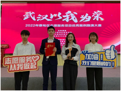 (通讯员 秦嫚雪)4月27日,“武汉以我为荣”—2022年蔡甸区志愿服务项目优秀案例路演大赛决赛在中法论坛永久会址举行。武汉校区团工委报送的“新青年 走基层”志愿服务项目,获得蔡甸区志愿服务项目优秀案例铜奖。
