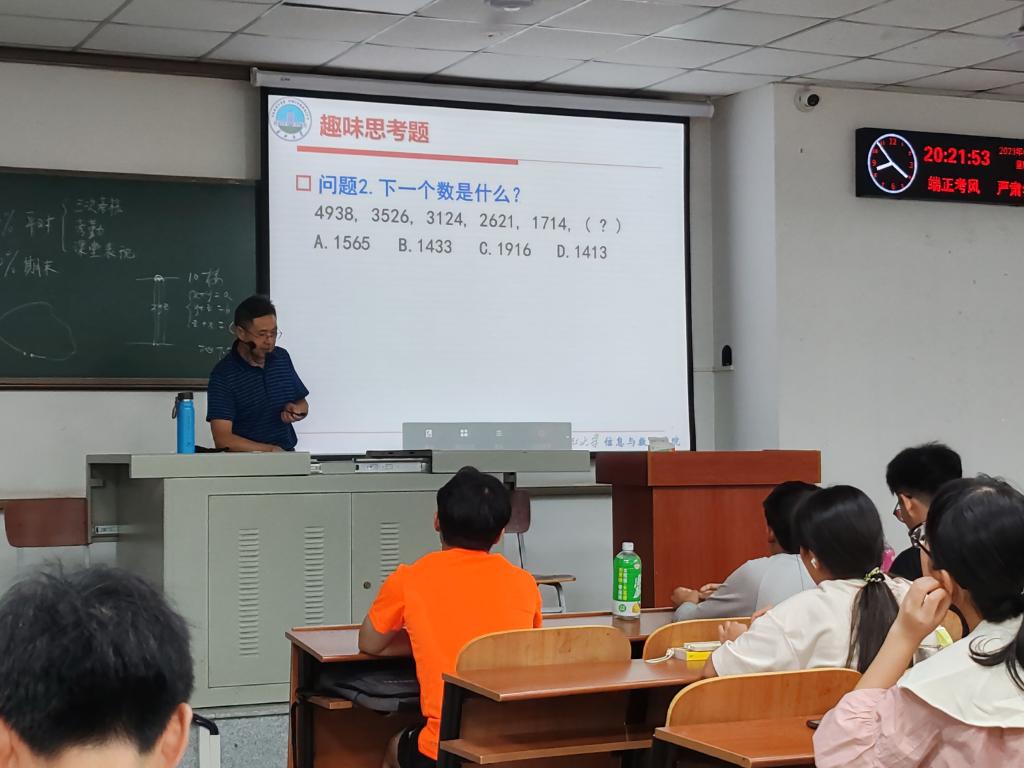 (学生记者 高忆希)“数学的情怀是什么?”8月28日晚上,潘大勇老师在课堂上这样问道。作为一门公选课,被他问到的几乎有来自武汉校区所有院系的学生,大家纷纷畅所欲言:“那些和数学搭边的日子都是我们的青春啊”、“情怀可能就藏在数学浪漫的公式、精妙的概率、跳跃的图形里。”