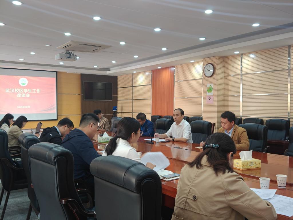 (通讯员 荆鑫)10月23日上午,校党委副书记、副校长杜国锋到武汉校区开展学生工作座谈调研,本科生院院长许锋陪同调研,武管会、各学院学生工作负责人、学工办主任参会并汇报重点工作。