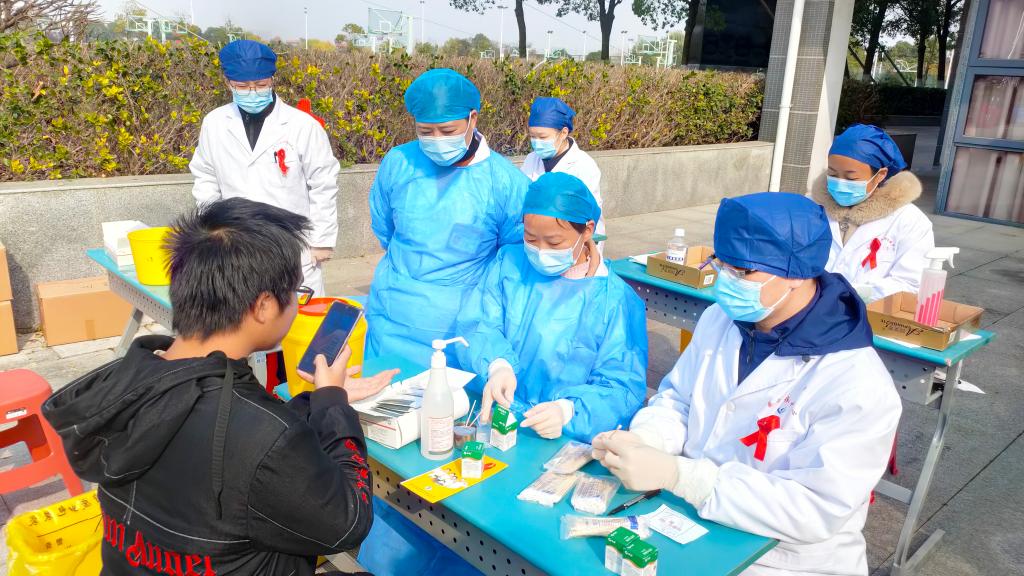 活动现场,蔡甸区疾病预防控制中心的医护人员向前来咨询和检测的师生发放艾滋病防治宣传手册,讲解艾滋病的发病历程、临床表现、传播途径、预防措施、学生怎样预防艾滋病感染及万一不幸感染HIV该怎么办等艾滋病防治知识,并倡导大家科学、正确地看待艾滋病,消除对艾滋病的恐惧和歧视,学会关爱艾滋病人。