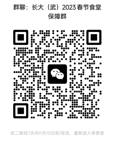 2.1月16日至28日春节期间有用餐需要的师生请扫码加群,食堂将根据情况作出安排。