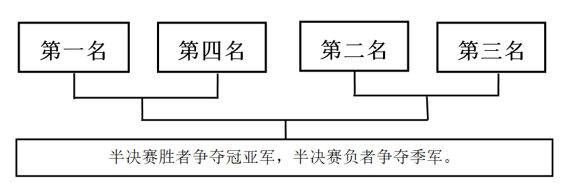 4.第一轮循环赛,积分前四名出线进入半决赛。半决赛第一名与第四名、第二名与第三名争夺决赛资格。