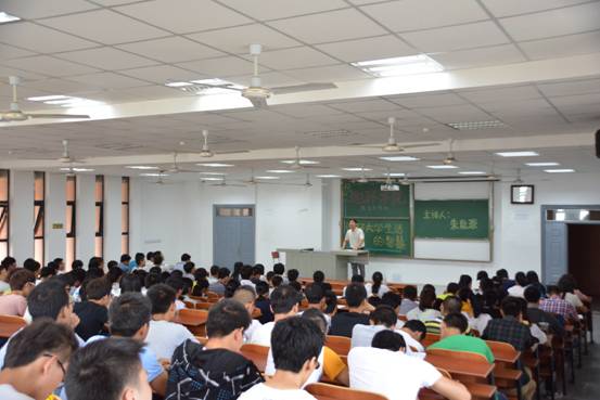 讲座上,朱书记一谈“大学的意义”。“我们为什么读大学?不单单是为了就业,最主要的,是为了学会‘学会解决问题’的能力。”朱书记开门见山,引用“嫦娥之父”欧阳自远、“光纤之父”高锟等人的事例向新生阐释“大学学习重在过程。” 这之后,他谈及我国 “石油资源枯竭,水资源污染严重”的环境发展势态,鼓励地化与水文两专业的学子将来为国家能源发展及污染治理出力献策。