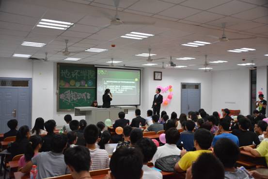 (学生记者 赵思月/文 通讯员 贾伊凡/摄)洞观课堂内外,精彩大学生活。9月26日晚,地环学院在武培B107举办了第二届校园知识PK赛。地环院14级四个八人小组参加了此次竞赛,院团总支书记刘娥老师与地环院全体14级新生共同观看了本次竞赛。