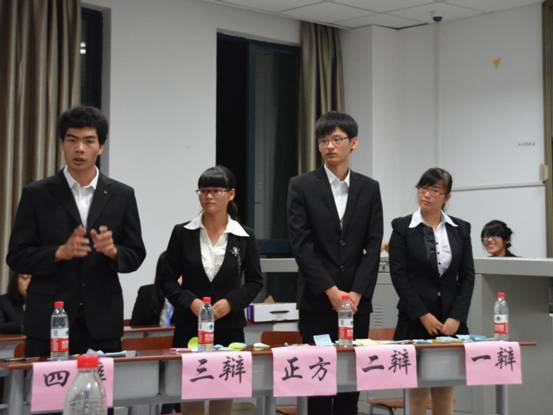 随后进行的第二场辩论中,水文1402及地化1402两个班级就“大学教育该不该以市场为导向?”进行PK。25日晚,水文13级两班、地化1401班与水文1401班又分别就“中庸之道应不应该被提倡?”、“大学广泛社交利大于弊还是弊大于利?”展开辩论。