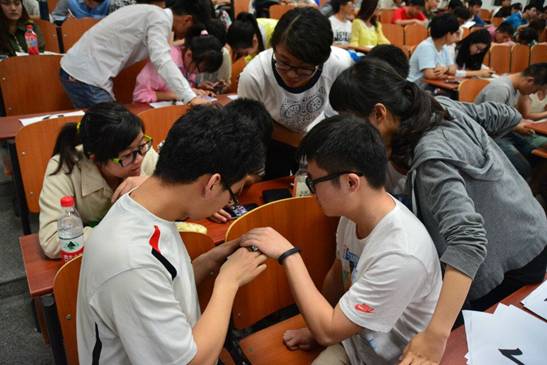 比赛采取分组累计积分制,12级、13级、14级48名同学分6个小组进行比赛。本轮比赛分5个环节,分别为基础比拼、抽签自答、QQ抢答、“中场互动,全民狂欢”和“火眼金睛”。在QQ抢答环节中,各选手集中精力进行抢答,现场气氛被推向高潮,每位选手都表现出了丰富的专业知识。比赛最后,莫晓靥老师对本轮比赛做点评,她表示很高兴看到活动展现的良好学习氛围,希望明年这个活动能有更多新意,让更多人参与到活动中。
