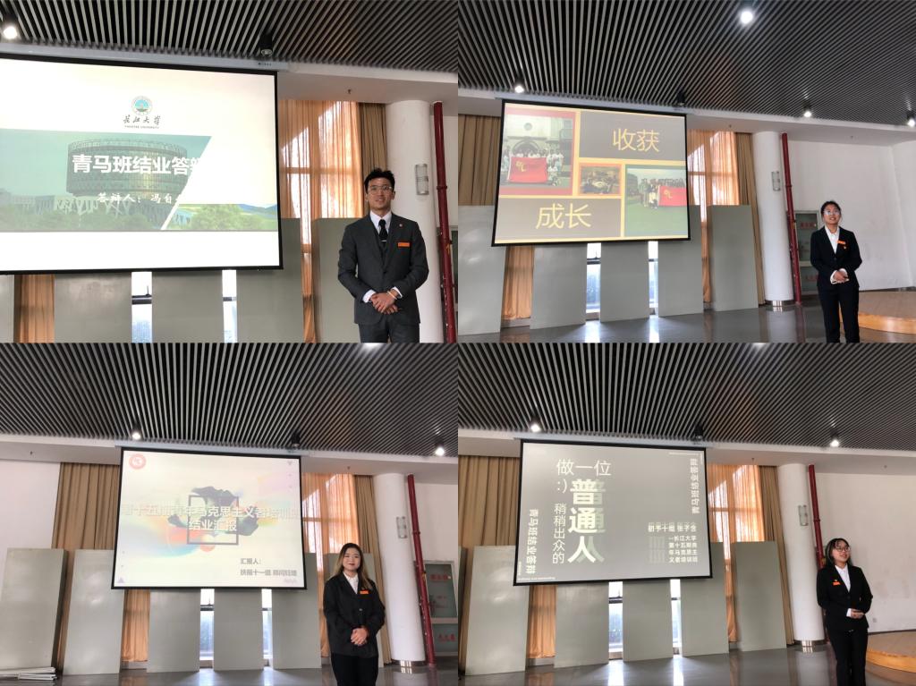 来自扶摇十一组的刘铭骞谈到:”青马一年,最是值得。聚散本是两相依,故人相离莫相忘。”来自初予十组的朱思维在汇报中动情说道:“满是收获,但也有遗憾。希望大家都在自己未来的道路上一直闪闪发光”。来自扶摇十一组的王付强在汇报最后说出了自己的心里话:“现在站在这个讲台上,往回看自己过去成长的点点滴滴,能够真真切切感受到自己一步一个脚印走来的变化。也很感谢自己在这里遇到了一群志同道合的战友,让我能够在战友们的陪伴下一起成长,一起进步,成为更好的自己。”