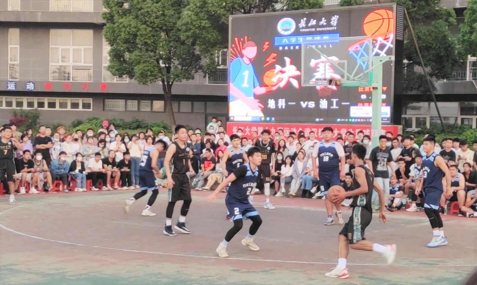 决赛开始前,双方选手握手示意,啦啦操、武术表演对比赛进行了预热。比赛正式开始后,油工一队率先拿到球权,乘胜追击拿下了第一球和第二球,以4:0的优势领先,给了地科一队一个下马威;地科一队奋起直追,追击、冲刺、投篮、扣球,一气呵成,将比分拉到了8:4,实现了反超。双方都拼尽全力,比分此起彼伏,到上半场结束,双方以23:23的比分打成平手。中场时,拉拉队带来了力量感十足的舞蹈,再次将场上的气氛推上了高潮。下半场开始后,油工一队气势十足,进攻势头十分迅猛,与地科一队拉开了6分之差;但地科一队稳扎稳打,紧咬比分,并成功反超4分。之后,地科一队攻守兼备,始终将分差控制在6分之内,不给对手任何喘息的机会。最终,地科一队以55:49的比分战胜油工一队,成为篮球联赛(男篮)的冠军。