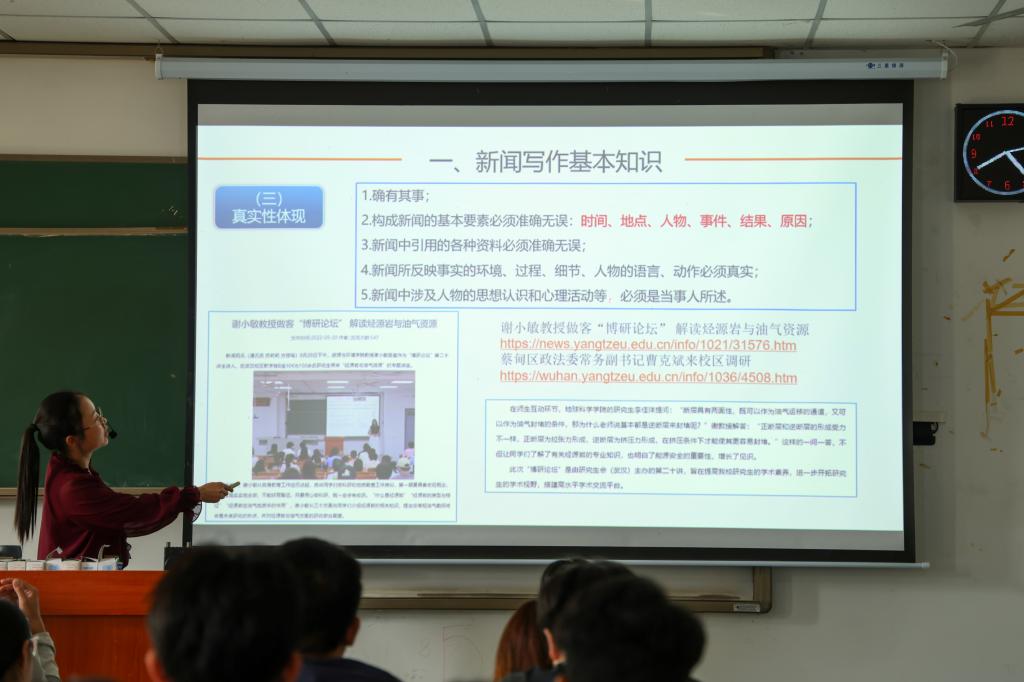本次培训由校区大学生记者团指导老师李莹主讲。培训内容涵盖了新闻写作基本知识、常用新闻写作方法以及新闻写作常见问题剖析。