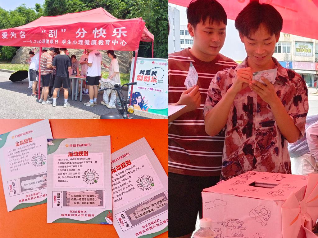 (通讯员 刘芳 赵佳伟)爱自己是终生浪漫的开始。为引导同学们关爱自我,认识自我,悦纳自我,学生心理健康教育中心于5月25日“全国大学生心理健康日”举办了“我爱我刮刮乐”活动。