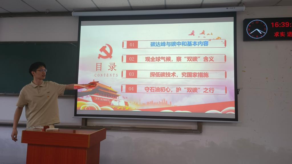 讲师团成员陈名德为地物学院研究生详细阐释“碳达峰与碳中和”的重要性及青年学子应当承担的关键角色;徐述邦在资环学院通过“不忘井冈山精神,继续前行”的主题宣讲,激励研究生们汲取爱国奋斗的精神力量,投身国家发展;徐敏在油工学院解读了新时代中国特色社会主义思想的实践意义,鼓励同学们积极为国家现代化建设贡献力量;冯欢在地物学院强调科技自立自强的重要性,呼吁同学们关注国家科技前沿、勇于创新;李帅臻在地科学院为研究生同学充分展示铁人精神的时代价值,激发同学们将铁人精神应用于学习科研实践和未来的职业生涯中。