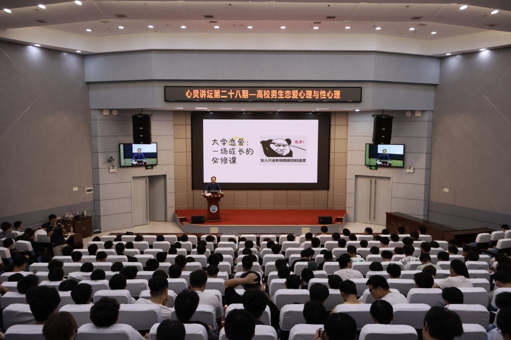 (通讯员 刘芳 万闽琪/文 彭梓航/摄)拥抱成长,与爱同行。9月25日下午,武汉校区学术报告厅座无虚席,第28讲心灵讲坛正在火热开讲。本次讲坛特邀华中科技大学心理健康教育中心副主任、中国心理学会注册心理师、湖北省心理健康教育与咨询研究会副秘书长雷光辉主讲,聚焦男生恋爱与性心理,来自武汉校区各学院的300余名男同学一起共上了一节生动的心理健康课。