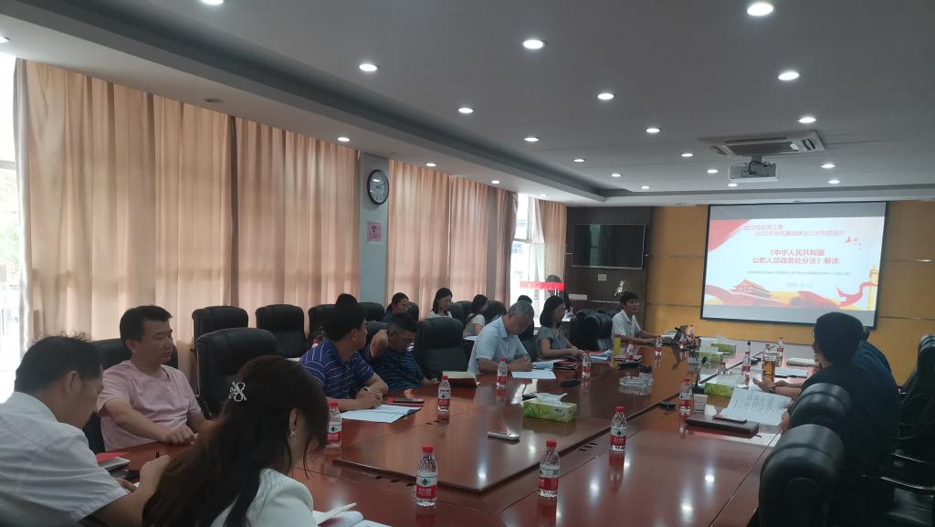随后,董超同志对《中华人民共和国公职人员政务处分法》给大家进行了详细的解读,详细阐述了《政务处分法》的意义、特点和要求,全面解读了《政务处分法》中关于政务处分的种类、适用规则等具体内容,重点讲解了政务处分的基本原则和方针、政务处分与党纪处分的区别,并结合典型案例解读了相关条款。