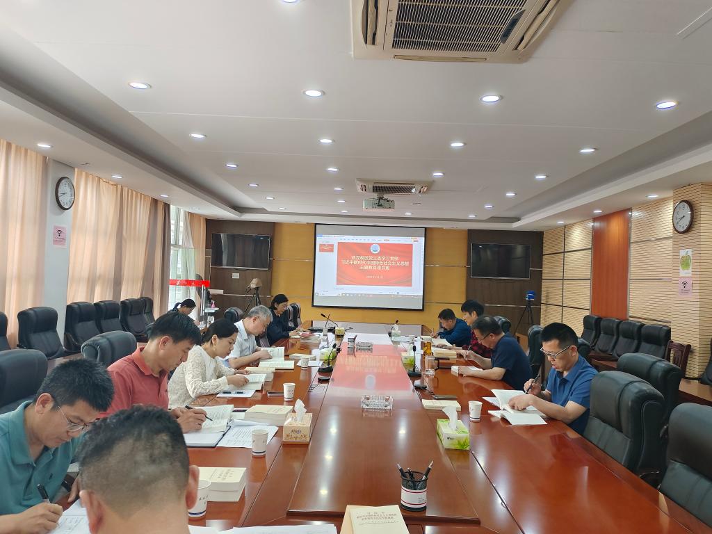 5月5日上午,武管会在校区管委会二楼会议室开展学习贯彻习近平新时代中国特色社会主义思想主题教育读书班学习,本次学习由武汉校区党工委书记董超主持,全体领导班子成员参加。