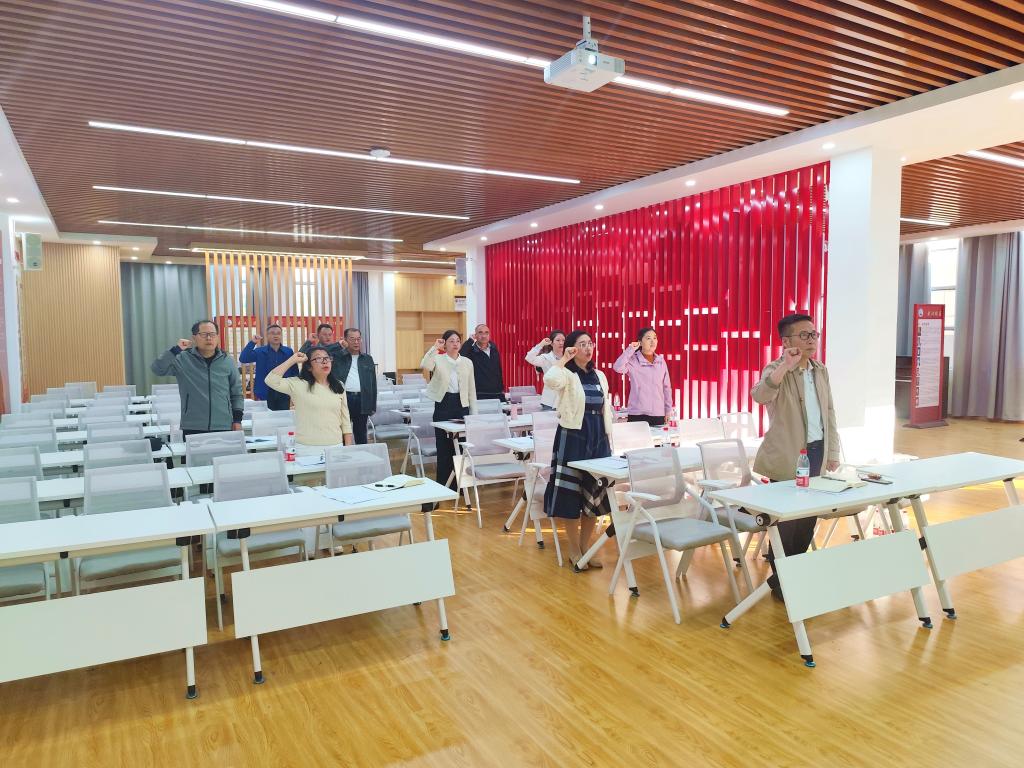 会议伊始,荆鑫同志带领全体党员重温入党誓词、交纳党费,并学习《中国共产党章程》第一章。